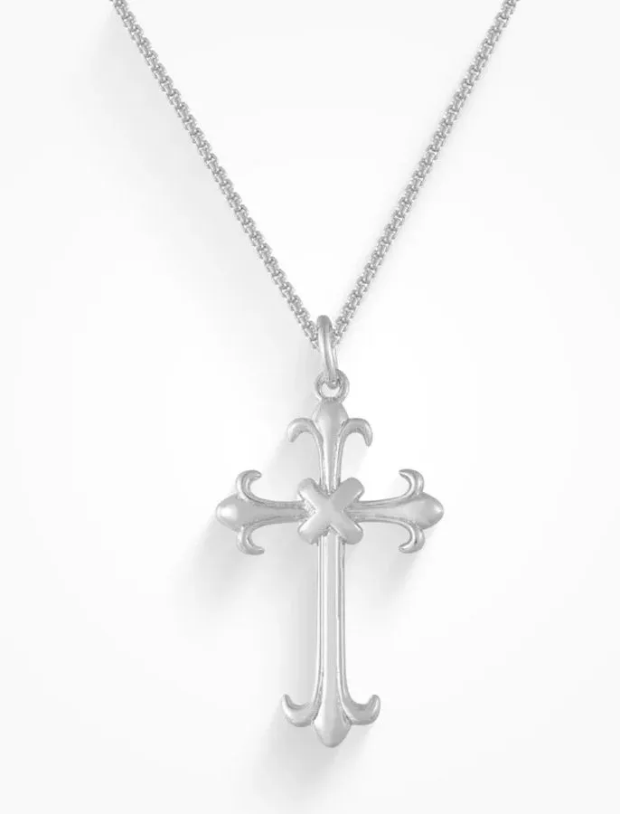 - Color: silver - Gothic/renaissance cross necklace - Rounded box chain - Silver plated - Length: 17” + 2” extender - Pendant size: 3 cm x 2 cm - Brand NEW and never worn before!