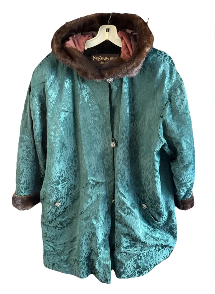 Yves Saint‎ Laurent Fourrures YSL Green Brown Fur Trim Lined Hooded Coat VTG XL Blue - $720 - From ivette