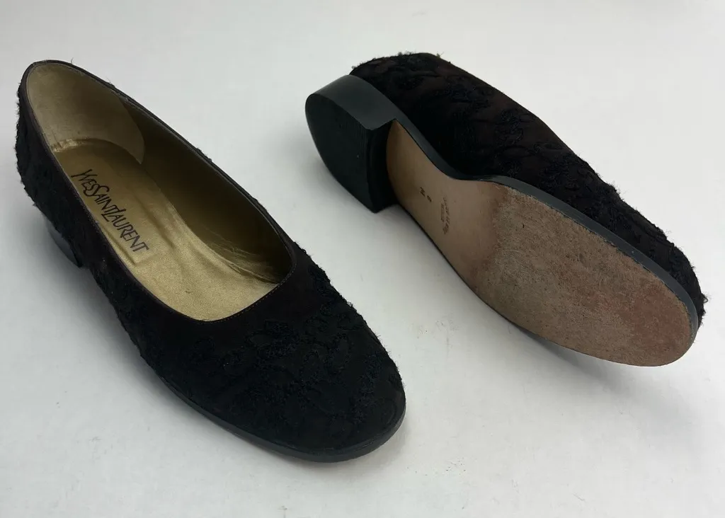 Yves Saint Laurent Vintage Black Brown Velvet Embroidered Shoes Womens SZ 8M FLAW: There is a surfa... Show more
