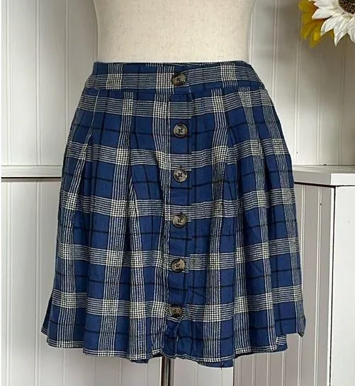 American Eagle Blue & White Plaid Button Front with side zipper and eye hook closure. Pleated Mini... Show more