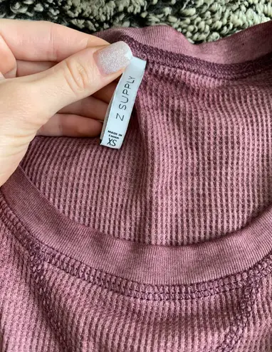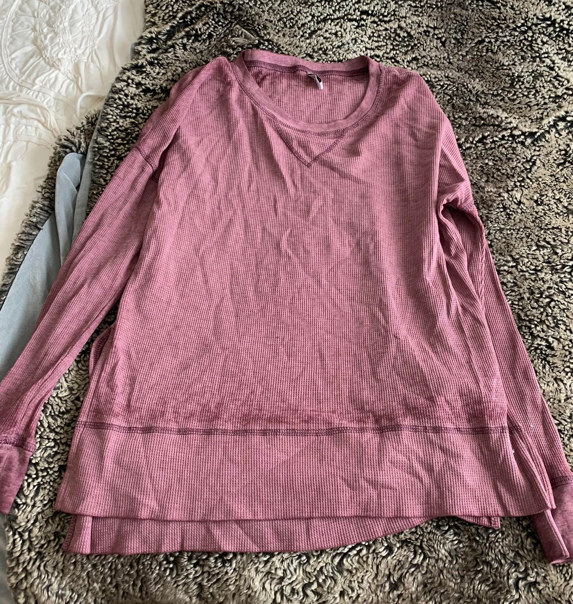 Never worn, waffle material, purple color, long sleeve, slit on the sides