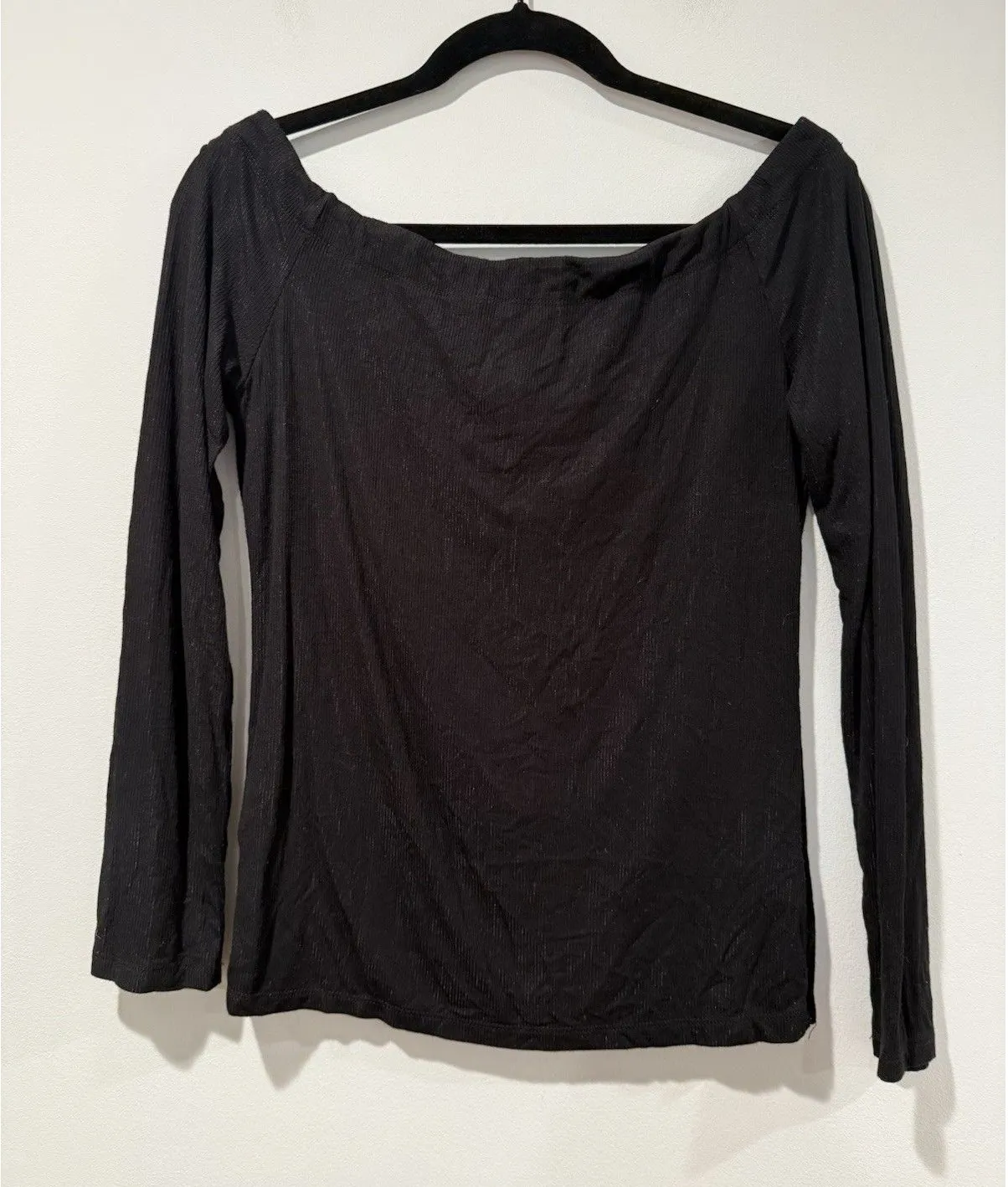 Z Supply Top Womens Large Black Scoop Neck Long Sleeve Ribbed Minimalist Travel Stretch Neckline, O... Show more