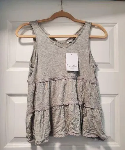 Love Fire Gray Lace Sleeveless Top This item may be a store return, a store display, or last chanc... Show more