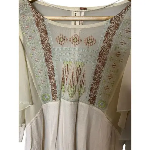 Free People La Cienega Embroidered Top Ruffled Layered Lace Eyelet Bohemian XS EUC
