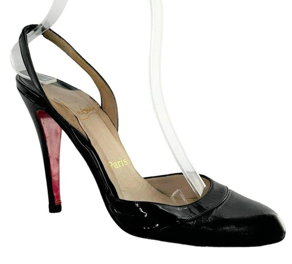 Christian Louboutin Black Leather & Patent Slingback Heels Classic and elegant heels in black leat... Show more