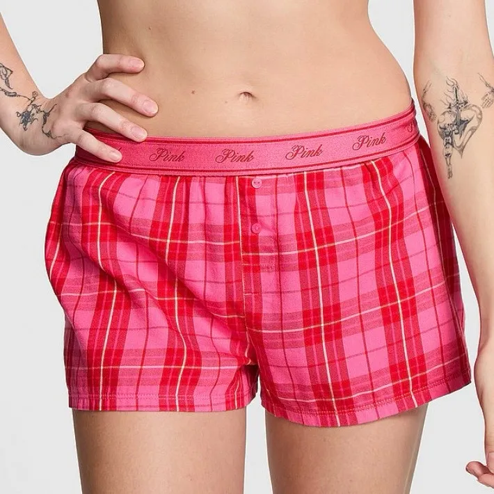 PINK VICTORIA’S SECRET Flannel Boxy Pajama Shorts Rose Red Plaid Soft Comfy Condition: New with ta... Show more