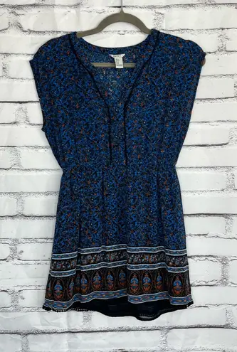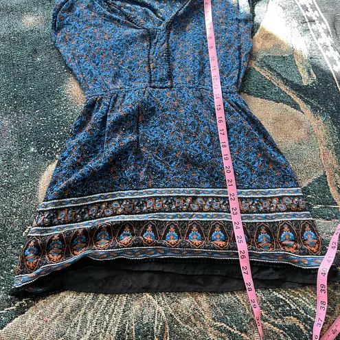 Beautiful and lightweight Forever 21 boho blouse featuring a blue, black, and burnt orange floral pr... Show more