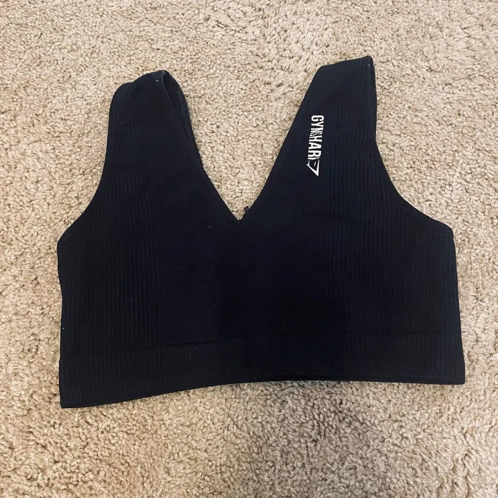Stylish black sports bra by Gymshark. Perfect for workouts. Slight damage of threads to top of strap... Show more