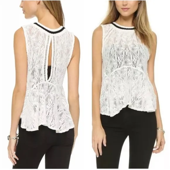 Free People Maisie Ivory Combo Top White Lace Sleeveless Size small. Excellent condition with no r... Show more