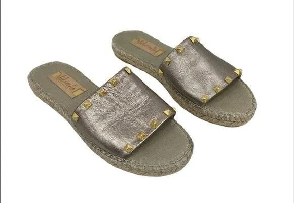 Vidorreta sandals 39 tan metallic leather slip on studded flat espadrille Size 9 - $34 - From Baldi