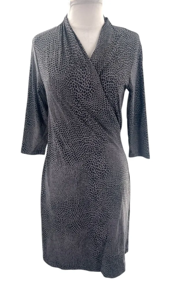 Excellent condition This is a J. McLaughlin Catalina Cloth Faux Wrap Dotted Half Sleeve Dress. J. McLaughlin's Catalina Cloth is a signature wrinkle-free, lightweight knit fabric made of nylon and spandex that is known for being travel-friendly and machine washable.