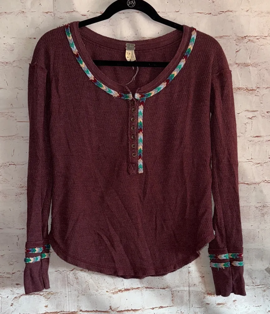 We the Free long sleeve Henley in a maroon with vibrant trim. Long sleeves and button detail. Ideal... Show more