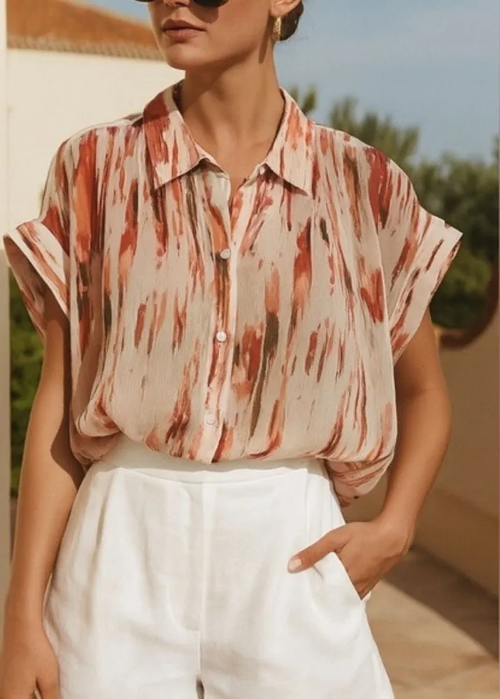DKNY Women's White Red Sheer Abstract All Over Print Chiffon Dolman Sleeve Button Up Top sz S Artsy... Show more