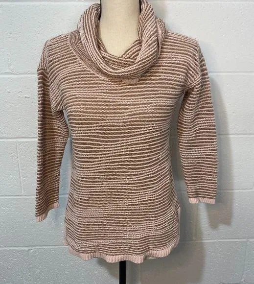 New York & Co Cowl Neck Metallic Gold Pink Size EXTRA SMALL Metallic stripe cowl neck sweater in ros... Show more