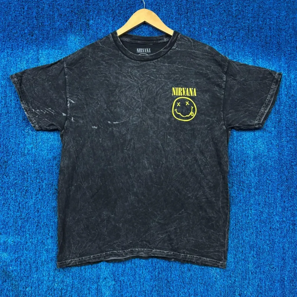 Nirvana Nevermind Smiley Grunge Band T-Shirt Size Large measures 20 inches pit to pit 27 inches long... Show more