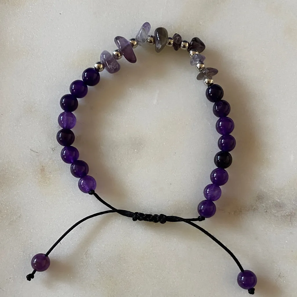 Amethyst Beaded Bracelet with Adjustable Cord Purple - $17 - From Luna