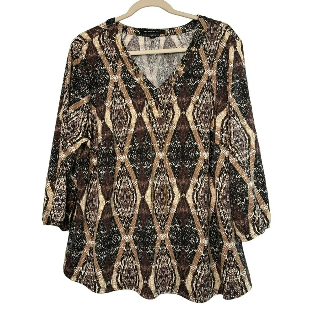 Features: • Gorgeous blouse. With necklace like accent! • Blouse • Spring, Fall, Winter • tags: blouse, dress, style, fashion, jeans, skirt, ladies, woman, career, vacation, dress up. Size: Womens 1X Measurements: Length 27 in / 69 cm Width 23 in / 58 cm Condition: Pre-Owned Like New No flaws to list. List Perfectly 30% : "Ohcarlayy"