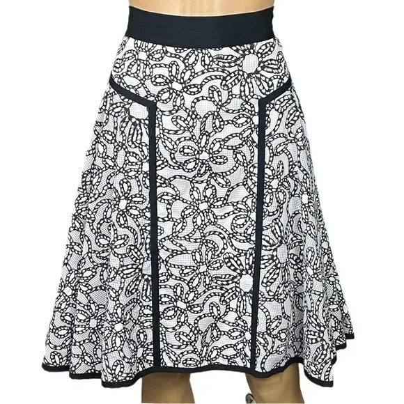 This skirt is a scene-stealer!! -Outer fabric has grey and white textured Gingham mixed with rope-like twirls and formed flowers with Grosgrain trim in black. -The fabric is lightweight and soft, and at the same time, stiff enough to keep the shape of the wide pleats you see in the photos. -Fully lined in 100% SILK! -Waist is a 2 inch black banded strip. -Back closure is 2 hook and bars on the banded waist with a zipper at the end. -No stretch. -Excellent pre-owned condition. I have only found 1 other and it’s a size 4 on reverse Google lens. Waist-14.5” across Hips-19” across Width at hem-50” Length-23.5” (Measurements appx.- Flat Lay)
