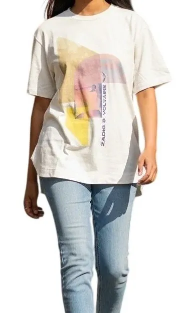 Measurements: • Chest: 21 in • Length: 25.5 in NWT Type: T-Shirt Department: Women Style: Basic Material: Cotton, Polyester Blend Neckline: Crew Neck Sleeve Length: Short Sleeve Sleeve Type: Classic/Fitted Sleeve Pattern: Geometric Theme: Art, City Features: Breathable, Lightweight, Stretch Fit: Relaxed Keywords: Zadig, Voltaire, graphic tee, white t-shirt, cotton, crew neck, short sleeve, designer, fashion, trendy, casual, streetwear, artistic print All items are hand picked and inspected it is NWT/NWOT it is stored in a non-smoking home if preowned it is washed in non-toxic and fragrance free detergent