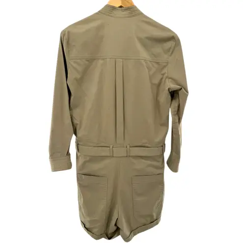 Chic and versatile Zadig & Voltaire "Cooki" Twill Romper, crafted from soft stretch cotton twill with a structured yet relaxed silhouette. Features a band collar, button-front closure, four front pockets, and an adjustable waist tie for a flattering fit. Designed with rolled cuffs and a utility-inspired style that transitions effortlessly from day to night. Details: • Color: Khaki beige • Style: Cooki Twill (SKCT8802F) • Fabric: 96% Cotton, 4% Elastane • Made in Romania, Italian fabric • Long sleeves with button cuffs • Button-front closure • Belted waist • Rolled hem shorts Measurements (approx.): • Pit to pit: 20" • Sleeve: 21" • Inseam: 4" Condition: Excellent pre-owned condition — no visible flaws. Clean and well cared for. Zadig & Voltaire romper, khaki playsuit, Cooki twill, cotton belted jumpsuit, safari utility romper, French designer, minimalist chic, travel outfit, casual luxe, festival style, modern neutral