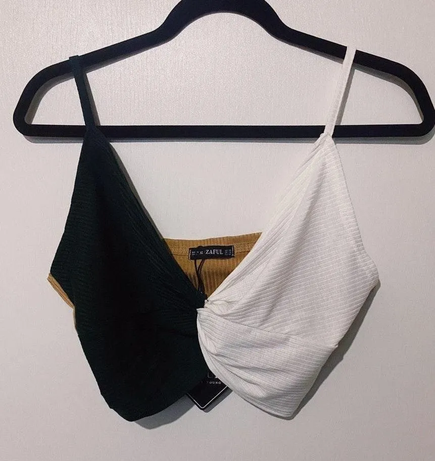 Really cute color block twist front top! Definitely fits more like a M/L!