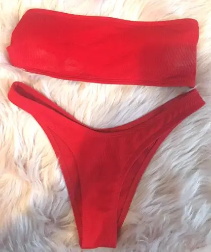 only worn once! great condition. the top is lace up adjustable in the back and the bottoms are cheek... Show more