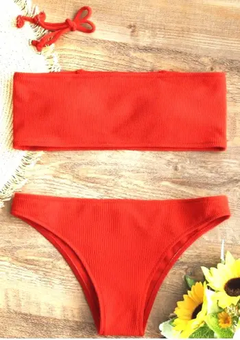 Tried on Runs small Ribbed texture bandeau bikini set with removable padding Bought from another us... Show more