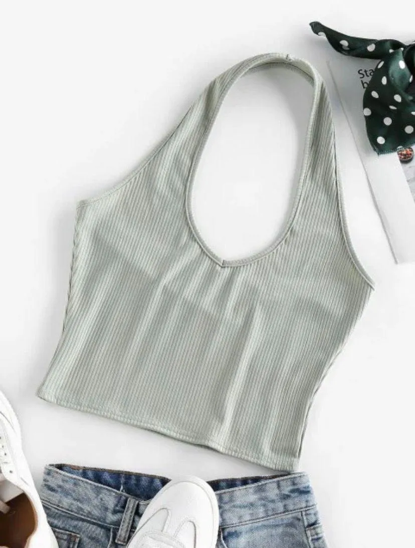Zaful Ribbed Halter Crop Top Green - $14 New With Tags - From Abbi