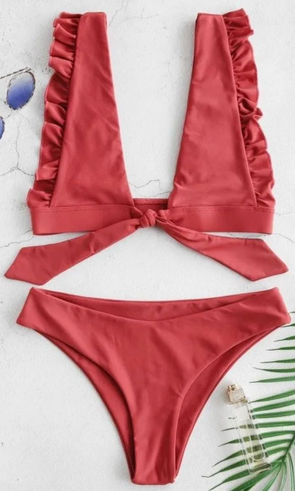 Zaful Ruffle Bralette Tied Bikini Set Red - $18 (21% Off Retail) New With Tags - From Taylor