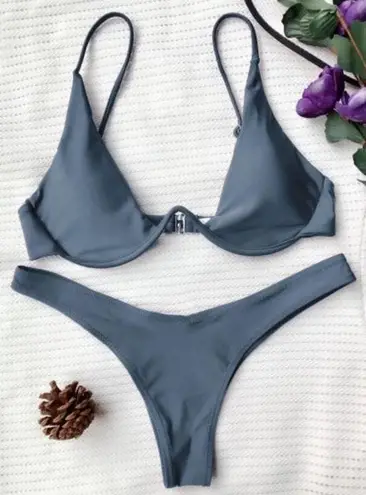 Plunge neck and underwire bra with Brazilian style bottoms! Only worn for these pictures to show ho... Show more