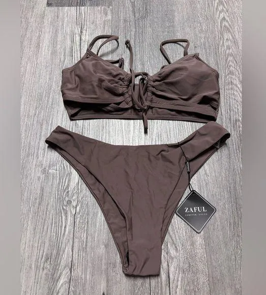 Zaful Tie Front Bikini Set Brown Size 6 - $15 New With Tags - From Annika