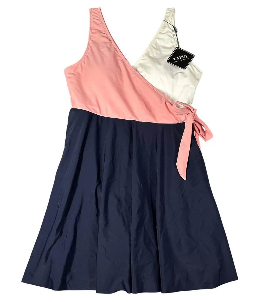Zaful Women's US 8-10 One Piece Swimdress Swimsuit Color Block V-Neck Wrap Tie Side Bathing Suit NWT... Show more