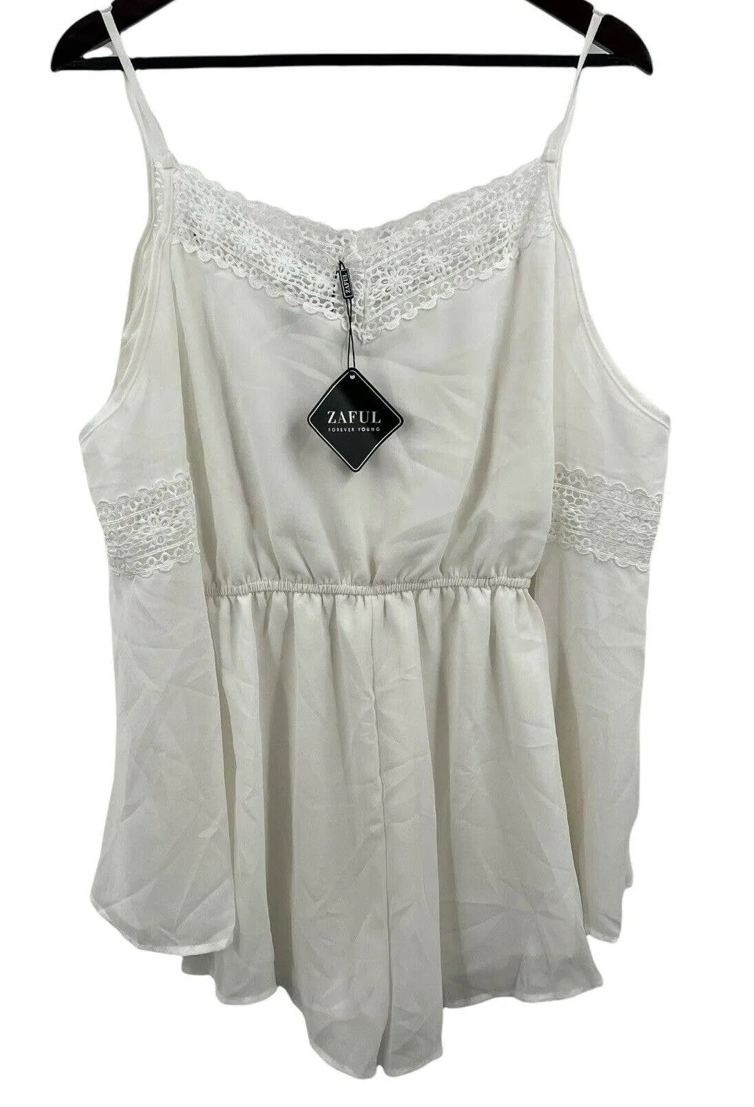 Zaful White Romper. V neck Spaghetti straps Elastic waist Lined Cold shoulder New with tags, small... Show more