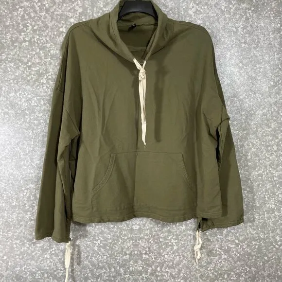 Women's plus size cozycore cropped sweatshirt by Zaful. This army green top has a cowl neck with dr... Show more