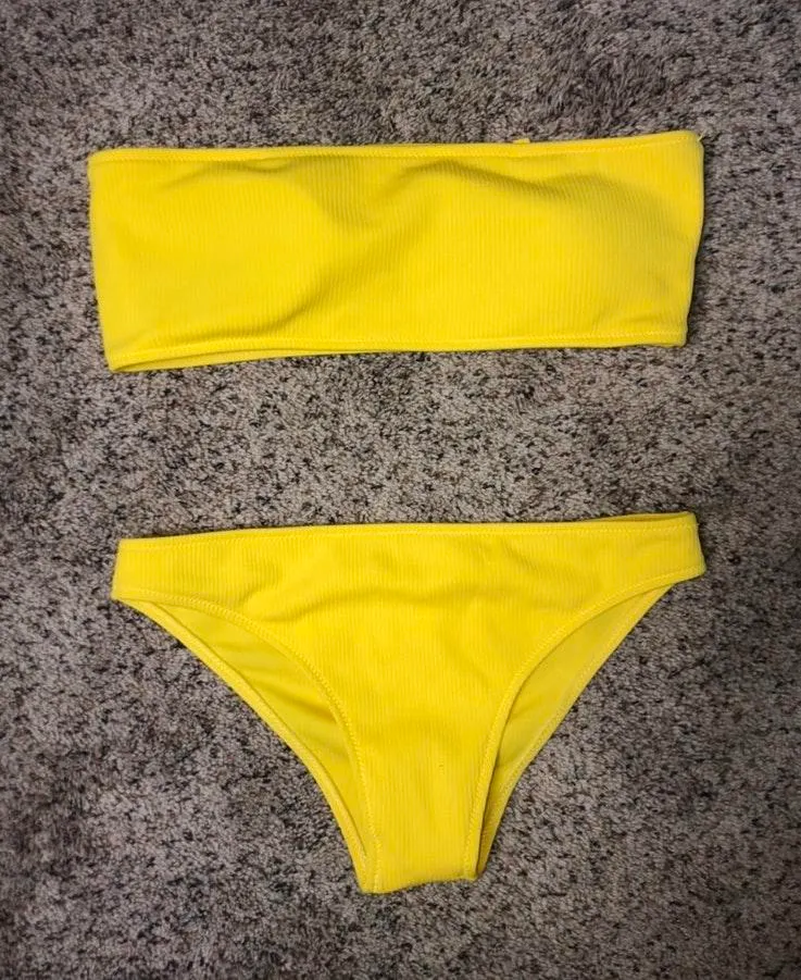 Super cute cheeky bottoms and tube top swimsuit. Good condition.