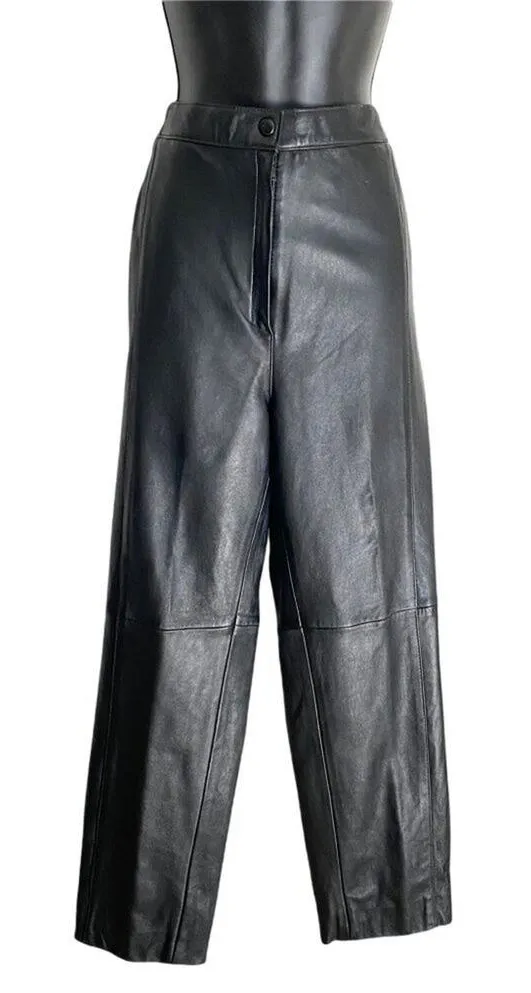 Zana Couture sz 12 black high rise VINTAGE 80s 100% Leather pants Color: Black Gently used with n... Show more