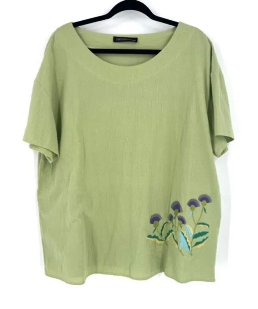 Zanzea Womens Floral Embroidery Short Sleeve O-Neck Tunic Top Light Green Sz 3XL Brand: Zanzea Department: Women Size: 3XL Color: Light Green Style: Tunic Type: Blouse Closure: Pullover Material: 100% Cotton Pattern: Floral embroidery Condition: Excellent condition Features - All Seasons - Lightweight - Soft and comfortable - Embroidery - Stretch - Straight hemline - Casual sleeve Measurements Pit to pit 24" Length 28.5" Stylish, Chic, Modern, Fashion, Casual