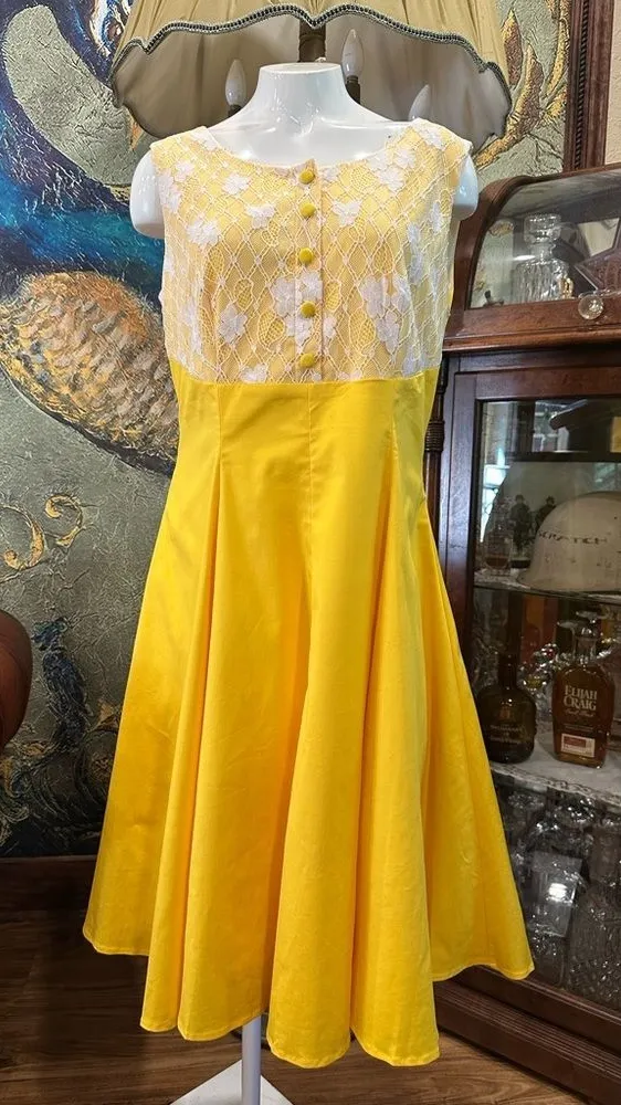 New without tags ZAPAKA 1950s yellow dress with a full skirt and laced bust. Please review the photos for additional measurements and details. #1950s #vintagestyle #retro #yellowdress