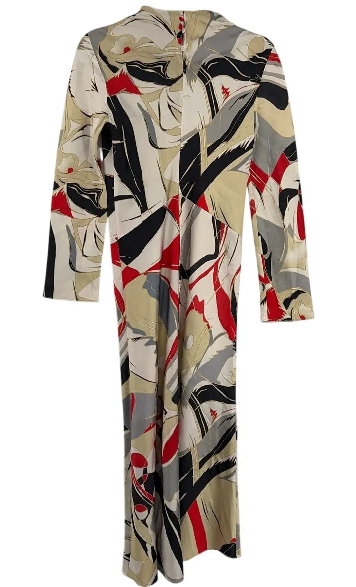 ZARA Abstract Print Midi Dress Long Sleeve High Neck Modern Art Minimalist