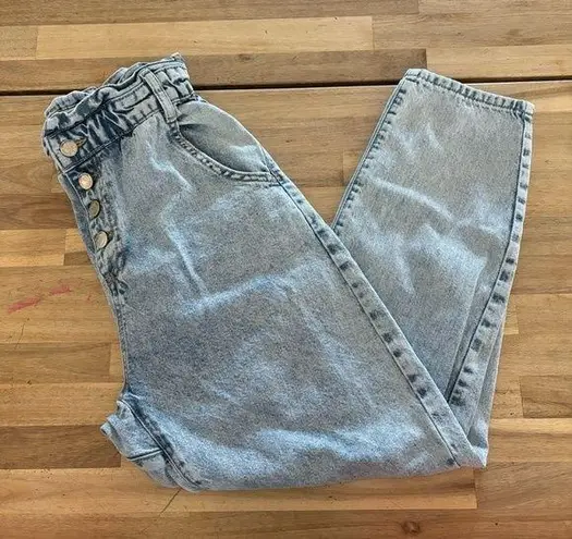 Zara acid wash paperbag jeans. Elastic waistband and button fly. 100% cotton. Measurements laying... Show more