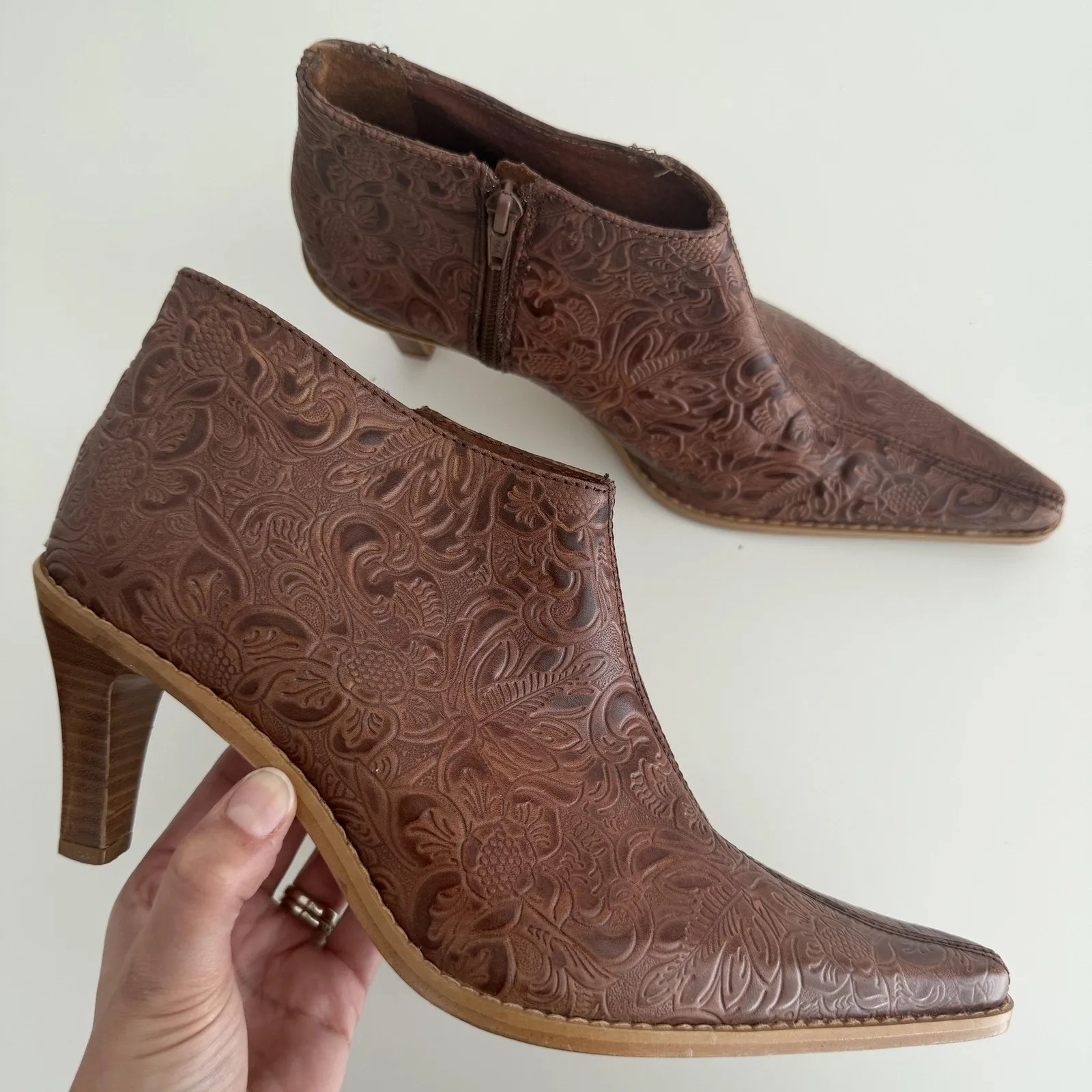 Incredible Zara womens ankle booties with a very pointed toe and western-inspired silhouette. Brown... Show more