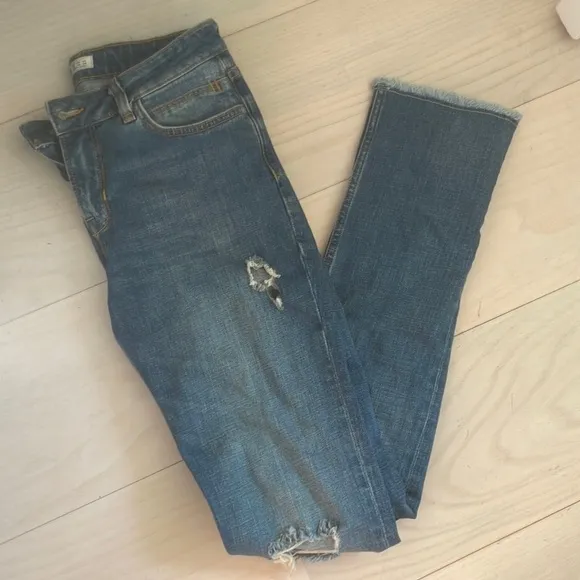 Really cute and flattering Zara jeans! Size 2. Never worn. Distressed style.