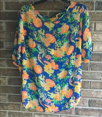 Zara Basic Floral Blouse with ties on the elbows. Size Large. Excellent Condition!