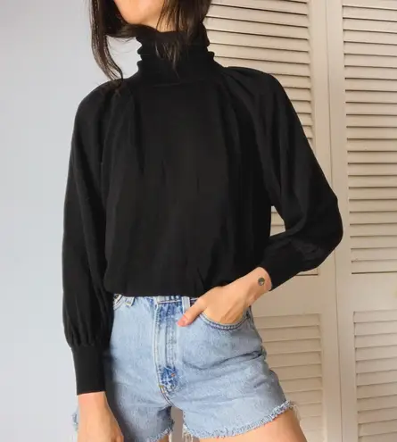 zara black balloon sleeve turtleneck sweater top marked size large but fits like a small great con... Show more