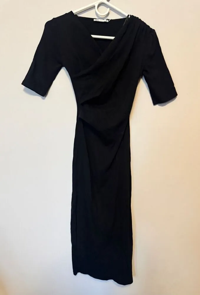 ZARA BLACK Drape Short Sleeve Long Dress Fit To Body Size small NWOT