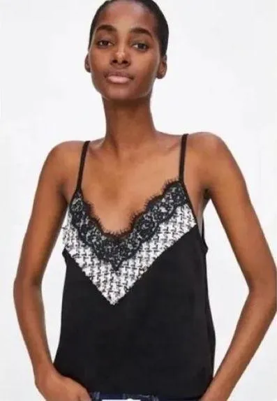 Zara Black Faux Suede Wool Tweed Embroidered Tank Top Excellent used condition, no visible signs of... Show more