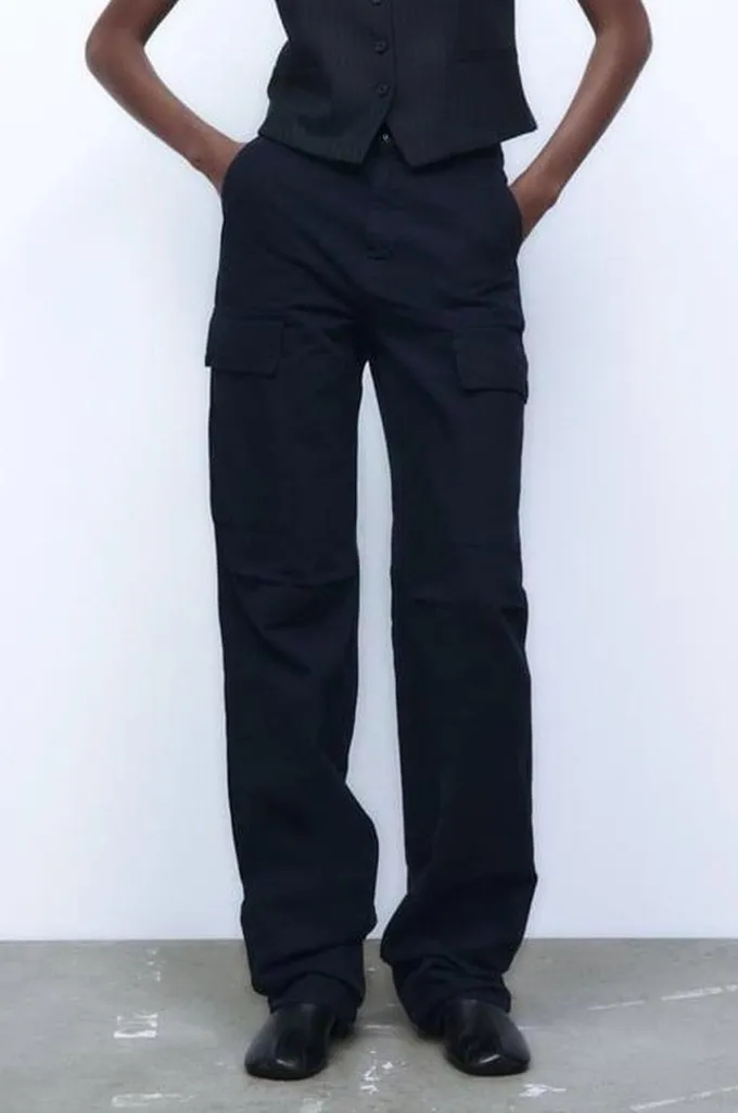 Zara Black High Rise Wide Leg Cargo Pocket Pants Utility Grunge Size 30 Waist Side to Side 15” Rise... Show more