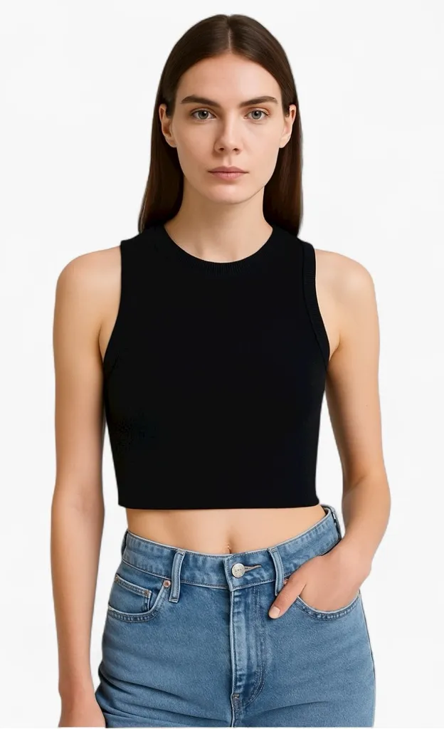 The top that makes getting dressed effortless. This Zara black cropped tank is that perfect go-to yo... Show more