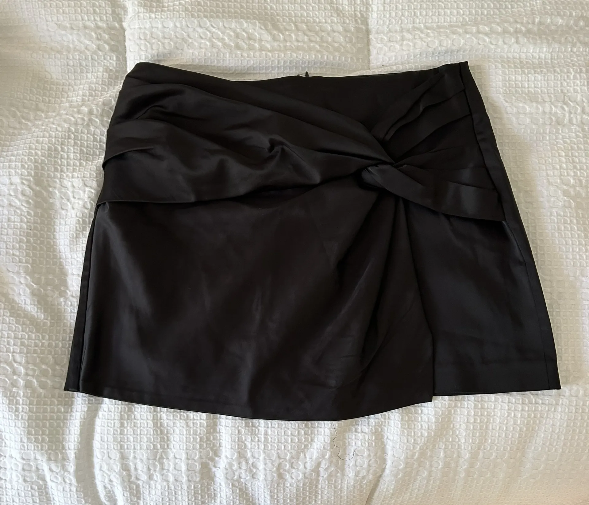 Beautiful, satiny material. Fits S/M. Perfect, elevated black mini