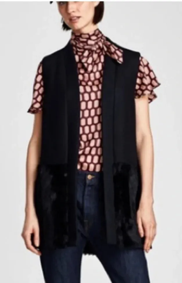 Zara Black Wool Blend Faux Fur Jacket Vest Pockets Women’s Size Small S Stylish black vest with a... Show more